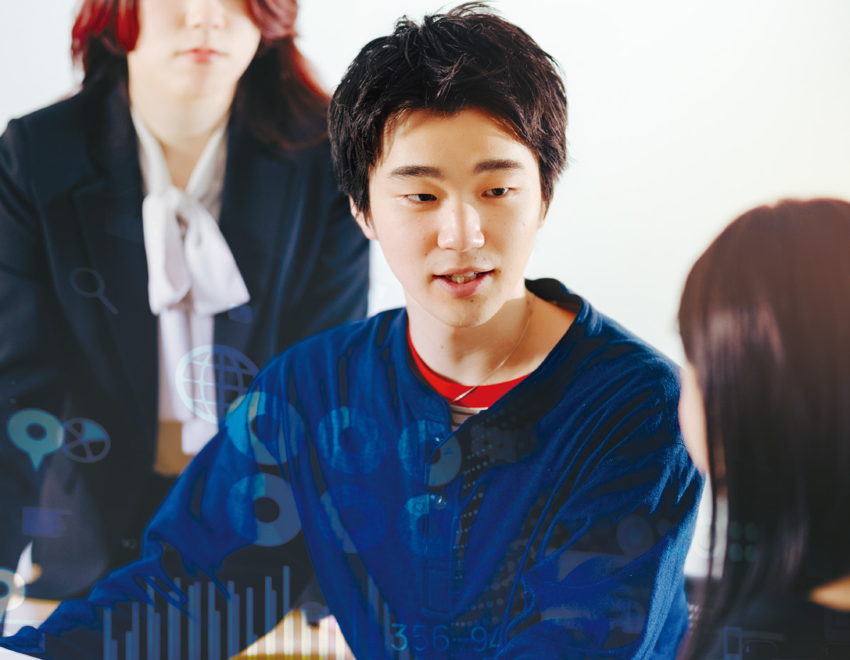 企業に所属しながら新事業や新商品の開発に挑戦したい人、営業・広報・財務等といった部門運営で力を発揮したい人のためのコース。ビジネスに必要な幅広い知識・技能を学びながら、業界研究で自分の興味を絞り込み、希望する分野・業界に就職、その後の活躍を目指します。