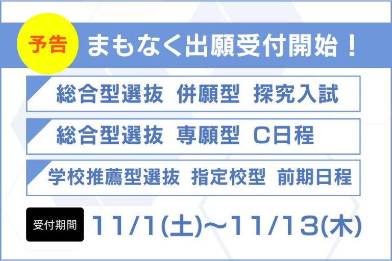 <入試>総合型選抜 併願型 探究入試・総合型選抜 専願型(C日程)・学校推薦型選抜 指定校型 (前期日程)【11月1日(金)より出願開始!】