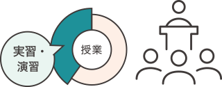 卒業に必要な単位のうち、3分の1以上は実習・演習の授業。1クラス40人以下の少人数教育で確実に実践力を身につけます。