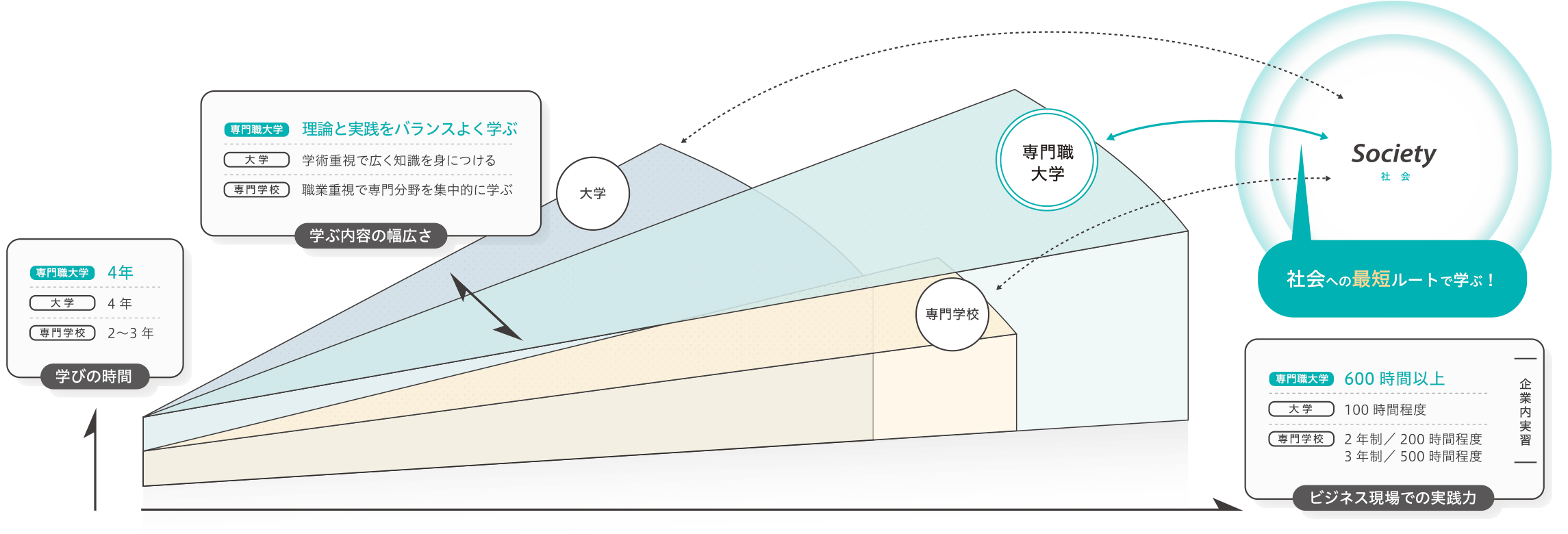 専門学校と異なり、「学士」が取得できます。卒業後は4年制大学卒の人材として、就職や大学院への進学、留学が可能です。
