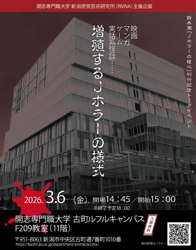 鈴木潤『Jホラーの核心』刊行記念トークイベント 「映画・マンガ・ゲーム・実話系怪談……増殖するJホラーの様式」 | 【公式】開志専門職大学|ビジネス・起業・IoT・データサイエンス・アニメ・マンガのプロになる。