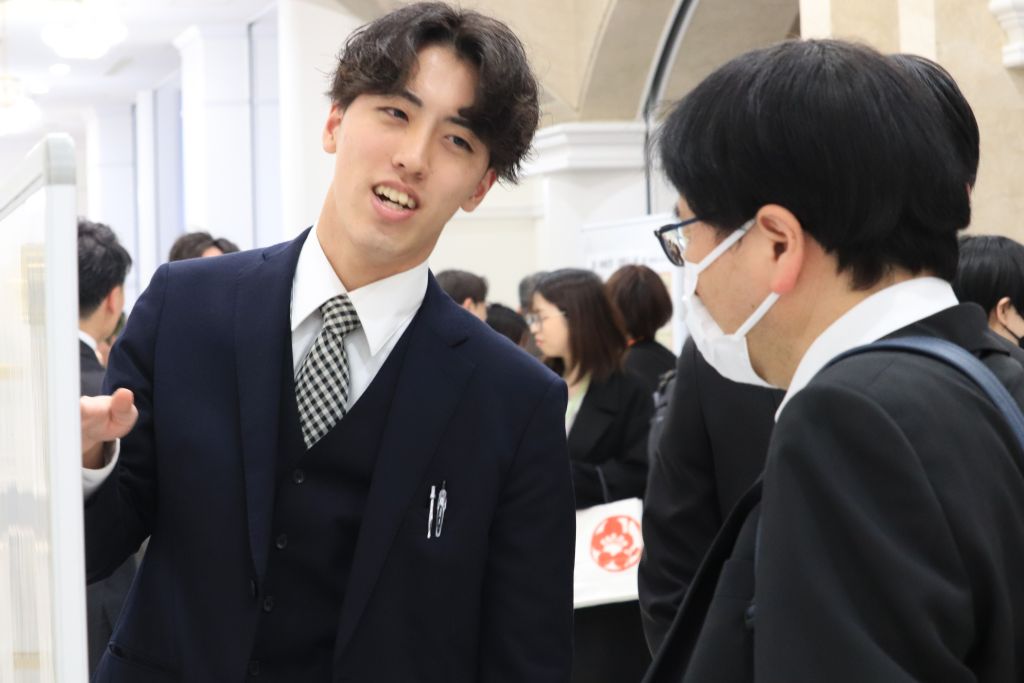 ポスターセッションでは、多くの企業・団体の皆様が学生の実習内容に高い関心を示し、説明に熱心に耳を傾ける様子が見られました。取り組みのユニークさだけでなく、活動成果の高さに驚きの声が上がる場面もあり、学生の成長を実感していただける機会となりました。