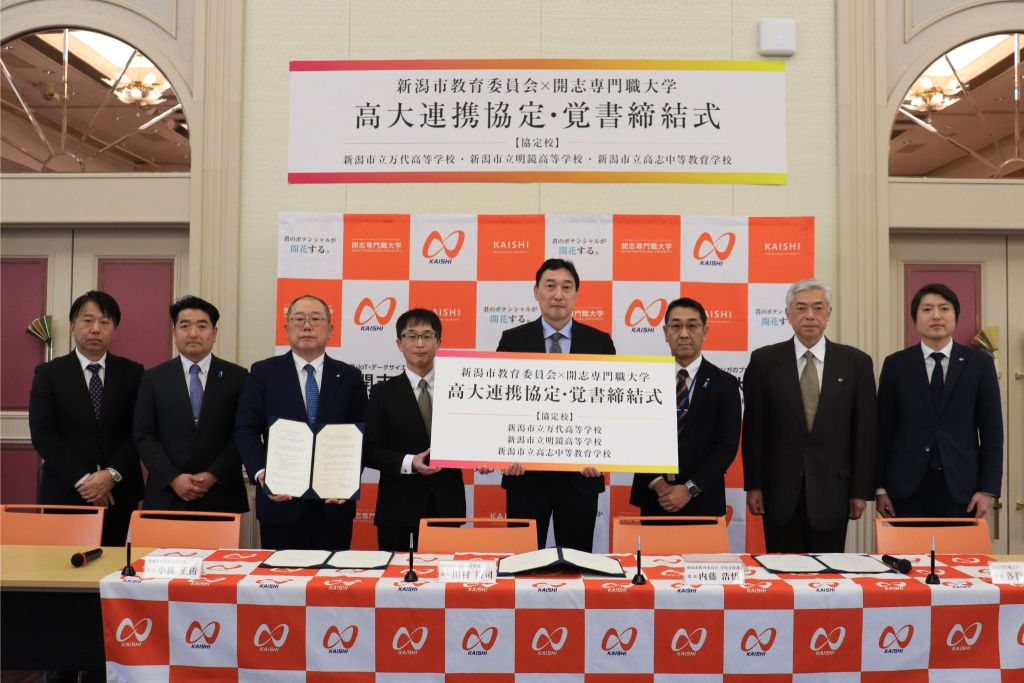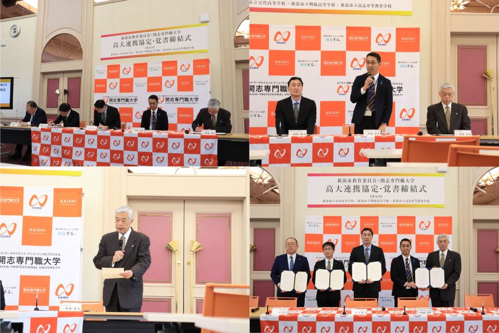 この度、本学は、新潟市立高等学校等(新潟市立万代高等学校・新潟市立明鏡高等学校・新潟市立高志中等教育学校)と高大連携に関する協定を締結するとともに、新潟市教育委員会と覚書を締結し、2026年1月28日(水)に締結式を執り行いました。